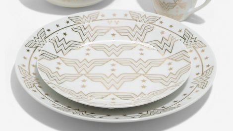 Cet ensemble de vaisselle Wonder Woman bardé de logos et composé d’une assiette, d’un récipient à salade, d’un bol, et d’un mug, est parfait pour le...